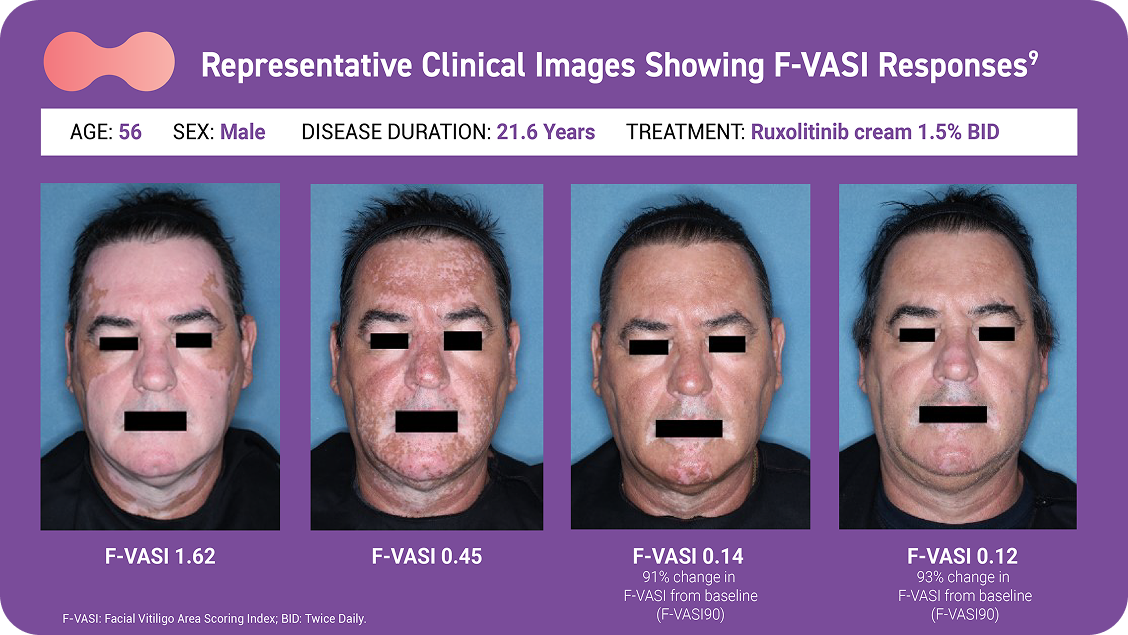 - 9. Rosmarin D, Passeron T, Pandya AG, Grimes P, Harris JE, Desai SR, Lebwohl M, Ruer-Mulard M, Seneschal J, Wolkerstorfer A, Kornacki D. Two phase 3, randomized, controlled trials of Ruxolitinib cream for vitiligo. New England Journal of Medicine. 2022 Oct 20;387(16):1445-55. Supplementary available at: https://www.nejm.org/doi/suppl/10.1056/NEJMoa2118828/suppl_file/nejmoa2118828_appendix.pdf. Last accessed: 4.12.2024.
